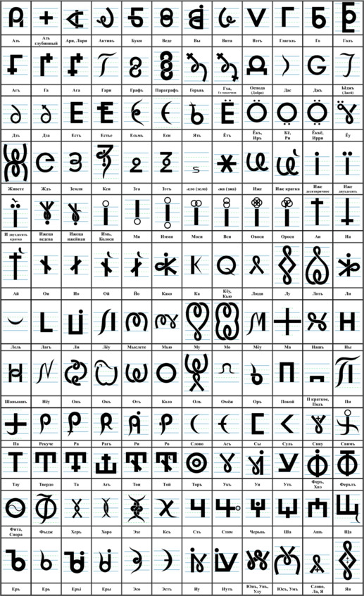 В ИмЁнах Буковъ (в названиях) первая Букова отображает графикой Концентрат Возможностей этого ЖивоТворящего Объекта, а последующие Буковы ИмЁна дополнительно расшифровывают, кому и чему может служить эта Неповторимая Система.