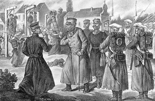 Анонимная гравюра из польского альбома к 50-летию январского восстания, изображающая «Муравьёва-вешателя» в Литве