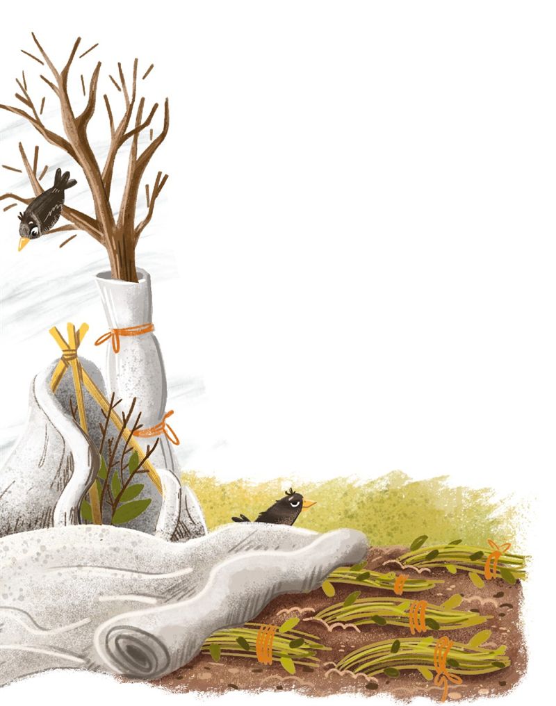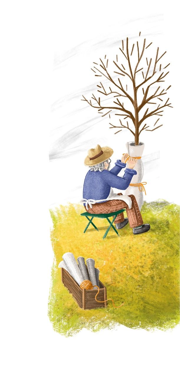 Деревья и кустарники хотели войти в зиму чистыми, опрятными, без болезней и отмершей коры. Под корой любили зимовать личинки вредителей, чтобы, проснувшись весной, сразу приступить к завтраку. Деревья такого поведения не одобряли, болели и страдали от этого, не могли настроиться на выращивание плодов, поэтому осенью хозяин удалял отслоившуюся кору, чистил стволы от мха и лишайника. А ещё, пока температура была выше нуля, белил стволы деревьев – одевал их в белые гольфы. Так он защищал кору от непрошеных гостей, а также от солнца, которое могло не только обогреть дерево, но и причинить ему ожоги.