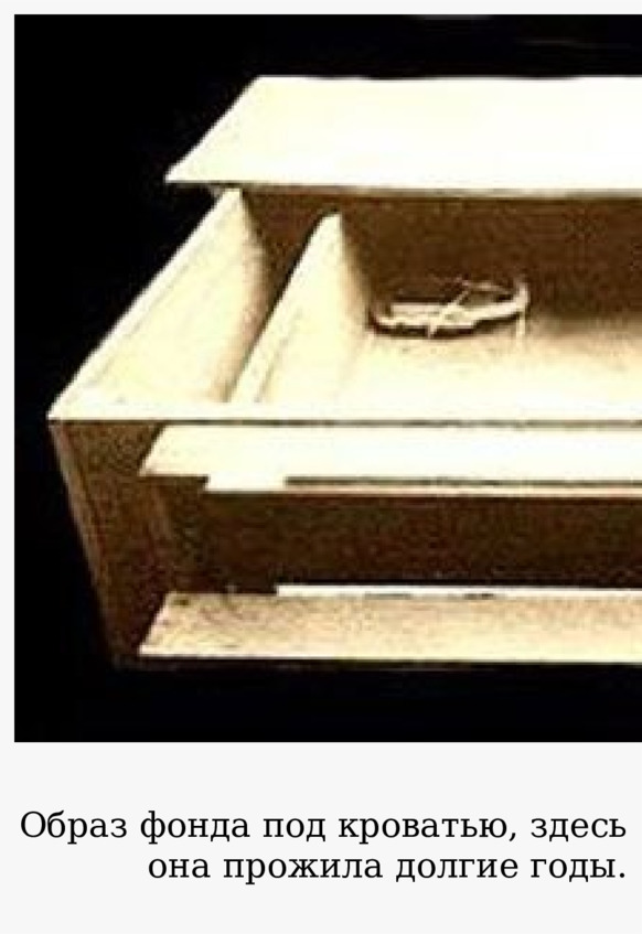 Образ фонда под кроватью, здесь она прожила долгие годы.