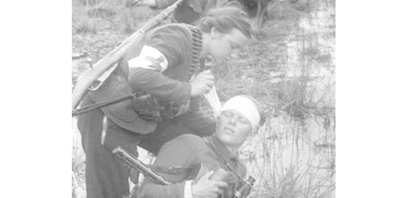 Он шел за всеми, сколько мог,Превозмогая ног усталость.Но не хватило сил у ног,Их отняла седая старость. Года, уже не те года, У жизни есть свои законы… И он тоскливо наблюдал, Как уходил конец колонны.Но к вечеру он всех нагналИ с нами под одною крышейОстановился на привал.И лет семнадцати парнишка, Спросил его: – Послушай, дед, Зачем ты тянешься за нами? Тот только посмотрел в ответ. Вконец усталыми глазами.Мы в них прочли без лишних фраз:– Беда у общего порога!У старика, как и у нас,Одна судьба, одна тревога. А утром тот же паренек, Хотя и знал, что путь был труден, Заплечный взял его мешок, Сказав: – Иди, так легче будет.6. ВДОВА