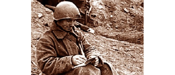 Мой брат служил когда-то на границеИ вот, в далекой дому стороне,На письма он исписывал страницыИ больше всех писал своей жене. Я часто видел письма брата, Но их горячность понимал едва. С тяжелой неуклюжестью солдата Он в них мешал влюбленные слова.Сбивались в кучу строк корявых стая.Я скоро их запомнил наизусть:«Любимая… Хорошая… Родная…Вернусь… Люблю… Ты жди меня… Вернусь…» И вот – война! Мы все теперь солдаты, Мы все теперь с любимыми вразброс. И как не вспомнить письма брата И тот, не высказанный в них вопрос.Война не мир, а пушки не хлопушкиИ человек пред ними одинок.Людей телячьи красные теплушкиНесут по руслам множества дорог. Огонь печурок озаряет лица, Обогревает дымом и теплом И вижу я, что наяву им снится Родимый и далекий отчий дом.И тряску сердца в письмах изливая,Как брат мой, изливая грустьВсе пишут также: «Милая… Родная…Вернусь… Ты жди… Люблю тебя… Вернусь…» И я вернусь! Я для тебя, родная, Пройду сквозь бури неизвестных гроз, Меня ведет вперед и сохраняет Вся та любовь, что я с собой унес.