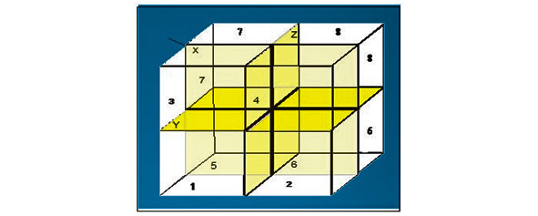 – Если поверхность сферы в бесконечности превращается в плоскость, то бесконечное сферическое пространство должно представлять собой безмерный куб, с чем я не могу не согласиться. Это бесконечное пространство Колотур разбивает, исходя из прямоугольной системы координат, условно, на восемь кубов.