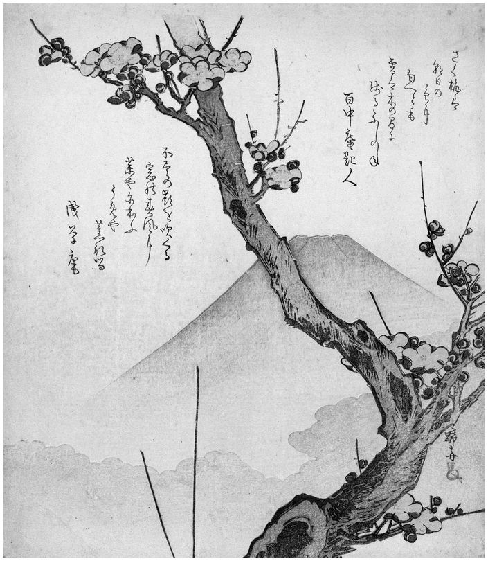 Тейсай Хокуба. Ветка цветущей сливы на фоне силуэта Фудзи. Ок. 1825 г.