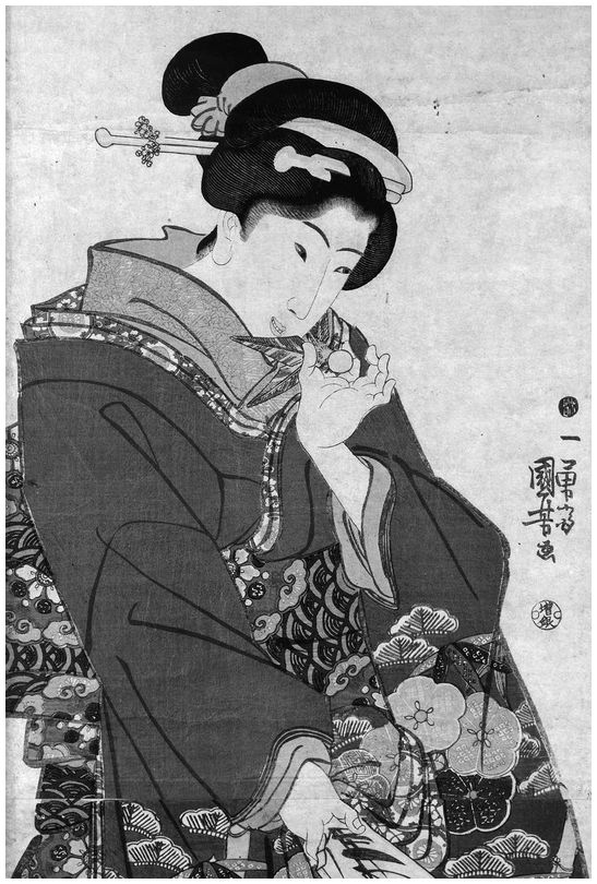 Утагава Куниёси. Девушка в голубом кимоно. XIX в.