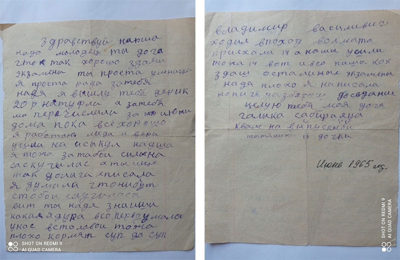 Папа часто болел. К тому же, в силу сиротского детства получить хорошее образование наши родители не смогли. У папы было начальное образование, то есть 4 класса, а у мамы и вовсе только ликбез. Программа ликвидации безграмотности предусматривала умение читать, писать и считать. Мама написала мне единственное письмо, когда я училась в интернате в 11 классе. В нём много ошибок, но в каждой корявой букве, выведенной неуверенной маминой рукой, столько любви и заботы! Я и сейчас не могу читать это письмо без слёз.