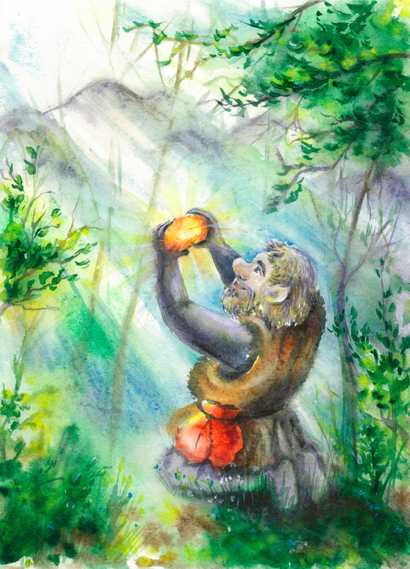 Однажды Тролль гулял по горам и нашел светло-оранжевый камень – сердолик. Он бережно взял его в руки, поднес к свету и стал смотреть, как тот переливается на солнце. Камень оказался чудесным – ровным, гладким, с тонкими молочными прожилками. Тролль был счастлив.