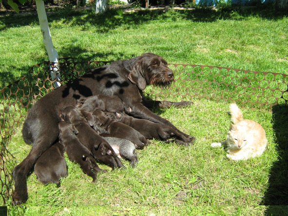 “Lotta” is German breed – “Draathaar”. The dog is a hunter. It is a cop, a dog that requires training and education; daily communication, as well, and any creature that you brought into the house or tamed.