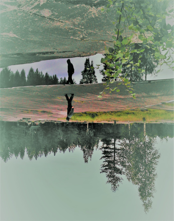 А Егошка, шаг, шаг – село позади; полшага, шаг – лес позади. И река. И горы. У Егошки всё своё с собой. Солнце, тучи, звёзды, ветер, снег ли, дождь ли, день ли, ночь ли… Видит Егошка – стоит человек на пути. Несчастный человек: боль с тоскою в глазах, на сердце ноша, на челе думы.
