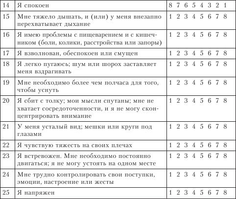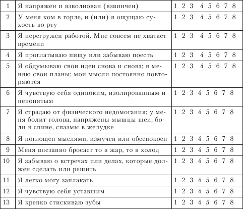 Для оценки нервно-психического напряжения (стресса) в отечественной психологии используется хорошо известный опросник Т. А. Немчина (1988) и Ч. Д. Спилбергера (1966).[5] Ниже мы предлагаем малоизвестную шкалу для измерения психологического стресса.