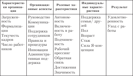 Переменные, значимо связанные с выгоранием, подразделяются на организационные, ролевые и индивидуальные характеристики, которые влияют на: