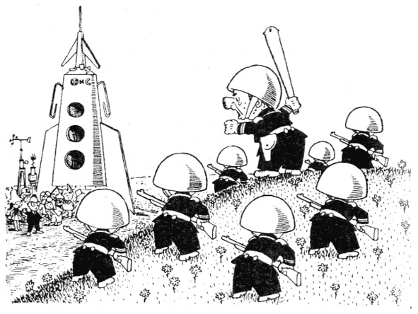 Но когда «братцы» во главе со Знайкой разыскивают пропавших друзей, заодно раздаривая местным крестьянам гигантские семена, следует приказ их «обезвредить». Властям решать проблему недоедания населения незачем – кто же тогда пойдёт на них работать?! Памфлет? Сгущены краски? А собственно где и в чём?