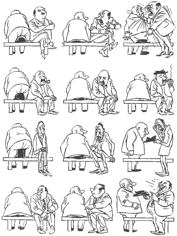 У датского художника Бидструпа есть серия рисунков, комикс о том, как четверо отреагировали на одну и ту же маленькую неприятность – каждый из них забыл шляпу на скамейке – а на неё кто-то сел… Один рассердился, другой рассмеялся, третий сделал вид, что не заметил, четвёртый заплакал.