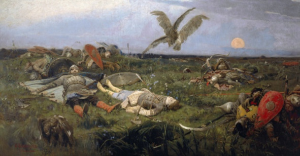 Лёгкой оказалась победа над передовыми отрядами половцев, и богатой добыча. Захватили и половецких дев, и золота без счёта, и каменьев, и шелков. Сам же князь взял себе только то, что подобает князю – вражий стяг и серебряное копьё. Ободренные успехом, устремились русичи к Дону – навстречу основным силам половцев. Итог этой встречи известен даже тем, кто не читал «Слова» – картину Васнецова видели все.