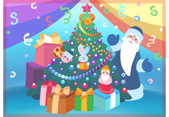 Елку наряжали с самого утра.У макушки елки три больших шара.Зайчик с барабаном прямо у ствола.Чуть левее зайчика гномик и сова.Шарики цветные, хлопушки, мишура,
