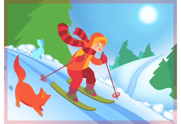 Раз-два-три-четыре-пять!Нас зима зовёт играть.Бери лыжи и коньки.И ледянку прихвати.Заморожены, смотри,Все дорожки и пруды.В парке холм с травой стоял —Ледяною горкой стал.