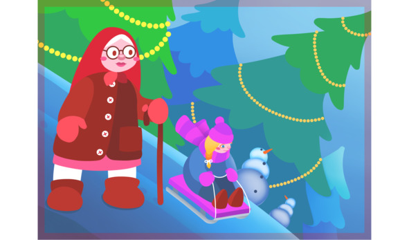 Мчится с горки детвора,Радуясь, что столько льда.Только бабушка грустит —Как по льду теперь ходить?Снежки весело летятИ снеговики стоят.Новый год, в снегу дома.Это к нам пришла зима.