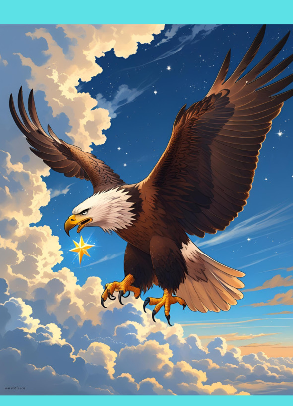 Орёл взмыл в небо, исчез в облаках и вскоре вернулся с сияющей звездой в когтях. Обрадовался Иван, понес звезду Бабе Яге.