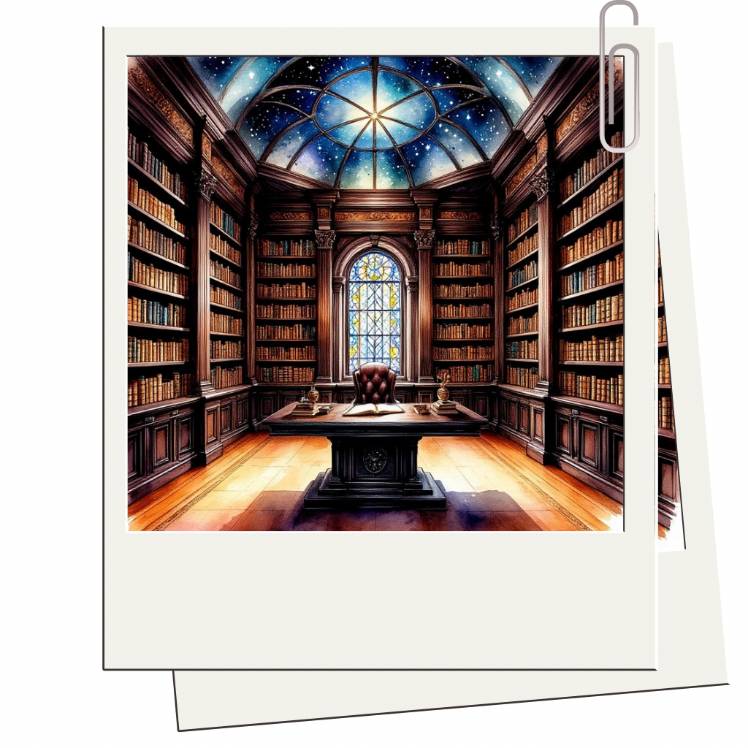 Внутри помещение напоминало одновременно библиотеку, тронный зал и лабораторию: кабинет оказался просторным и высоким, с куполообразным потолком, расписанным звездным небом. У витражного окна на небольшом ступенчатом подъеме расположился массивный стол из чёрного дуба. Стены кабинета – сплошные массивные книжные полки, на которых хранились древние фолианты, свитки и артефакты, похожие на магические. Кабинет директора оказался первым местом в академии, где от гула энергетики у меня, по ощущениям, волосы вставали дыбом.