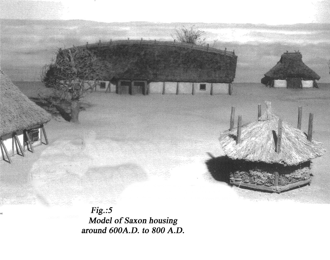 Findings from the period between 600 to 800 AD reveal a Saxon dwelling near Warendorf, Westphalia (fig.:#5) --- a forerunner of the later classical farmhouse throughout Northwest Germany known as the ‘Niedersächsisches Bauernhaus‘ (Lower-Saxony farm house)