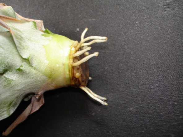 Щадящие подрезки провожу до тех пор, пока место среза не станет совершенно беленьким. После чего корону снова оставляют на просушку среза на несколько дней. А дальше, вы уже знаете что делать.