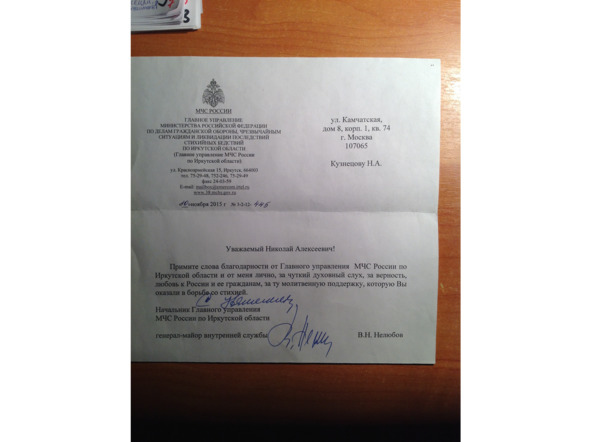 Письмо, конечно, не подтверждает, что от моих молитв смирился ветер и тепло аномально пришло в Крым. Но, я счастлив, что участвовал в самый трудный момент, как и при пожарах в Прибайкалье.