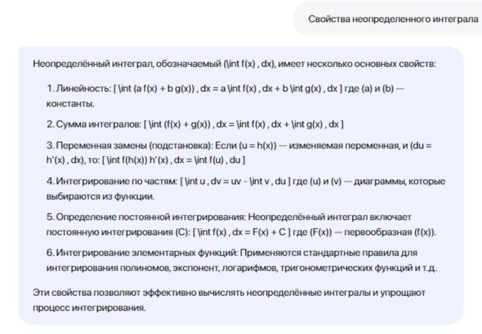 Но все три нейросети абсолютно правильно отметили очень важную особенность процесса нахождения первообразной, называемого интегрированием: