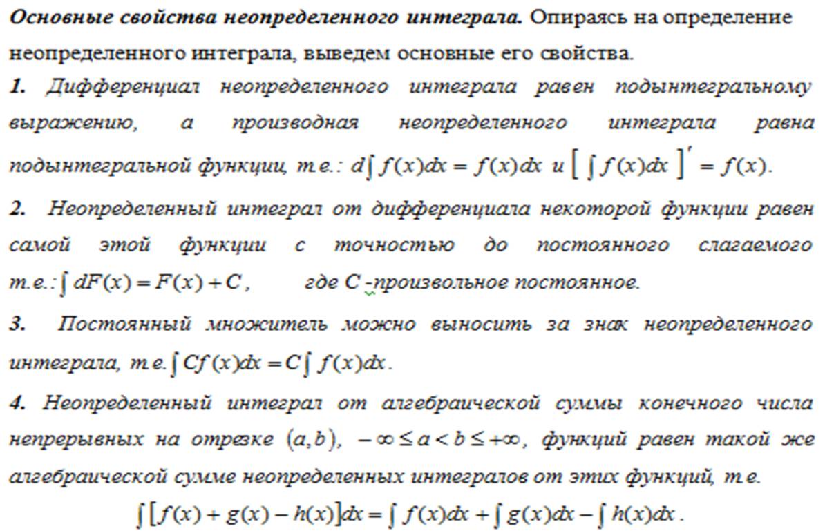 Неопределенный интеграл – это функция, которая показывает обобщение накопления (или суммы) значений некоторой функции. Основные свойства неопределенного интеграла включают:
