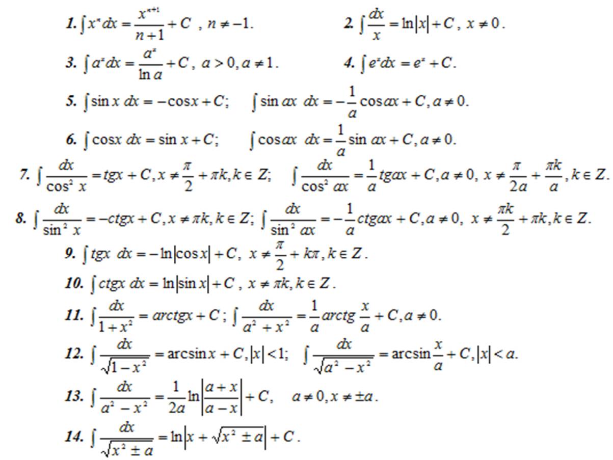 При этом к результату добавляется константа интегрирования \( C \), так как производные констант равны нулю: