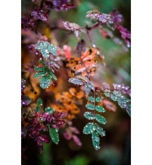 Грозди рябины красным изумрудом.