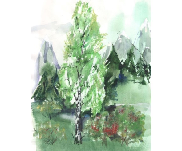 Высоко в седых горах, с макушек которых облака пьют воду, лежало семечко, но ветер поднял его и отнес в тридевятую чащу, в тридесятый лес. И там много лет назад родилась Берёзка. Высунула пальчики – веточки из земли, пошевелила ими, распустила почки и стала любоваться миром. Тут было посмотреть на что. Сосны-великаны, дубы – молчуны, липы-стройняшки гордо шелестели кронами. Ёлочки-красавицы зеленели, звенели, радовались солнышку, дождям, ветру. Поляны, украшенные незабудками, луговыми гвоздичками, багульником привлекали пчёл и шмелей, а те жужжали, ссорились, мирились и снова жужжали. Бабочки, кузнечики, муравьи – всё было нашей Березке в диковинку.