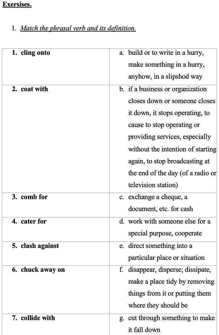 5. Make up sentences of your own using the phrasal verbs of Unit 7.