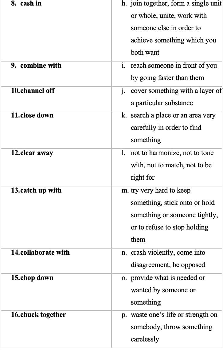 9. Translate into English using the phrasal verbs of Unit 6.