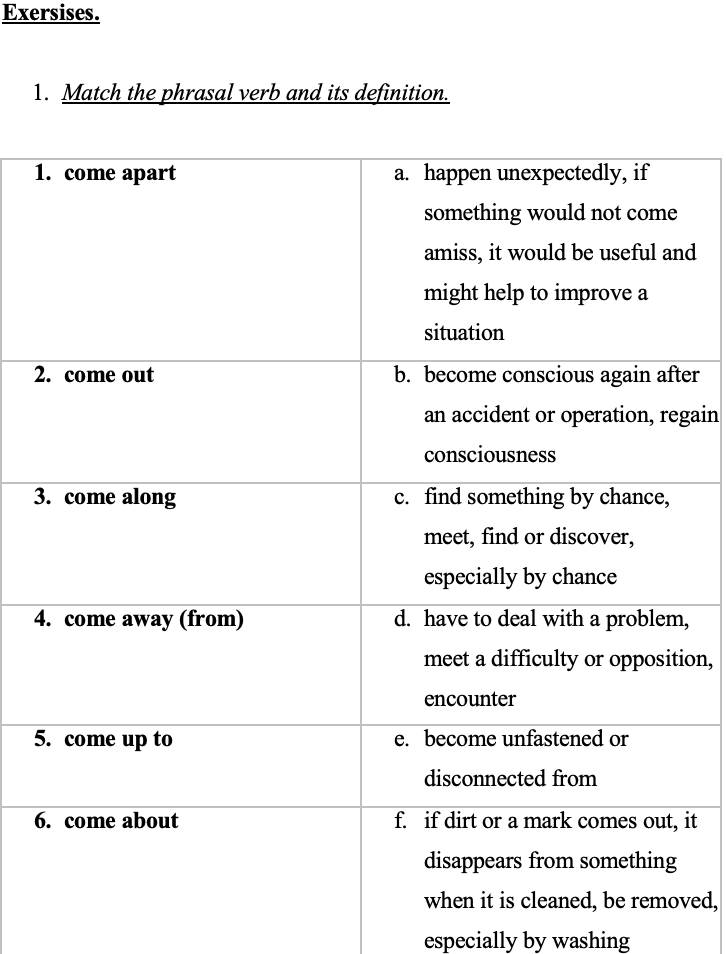 5. Make up sentences of your own using the phrasal verbs of Unit 6.