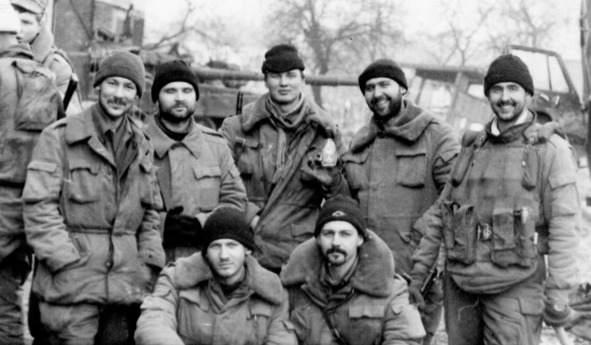 Переночевали в холодном и сыром подвале. Утром на командирском БТР-80 отправились в район, где расположился наш батальон. Чем ближе к назначенному месту, тем отчетливее видны места недавних боев. Трупы людей, их еще не успели захоронить. Хорошо, что зима и нет запаха разлагающейся плоти. Тут же бегают собаки. Для них настало неимоверное раздолье. Глядя на обглоданные скелеты оставалось лишь ужасаться тому, что никому не нужны брошенные на произвол человеческие останки. Не так страшны изуродованные войной трупы, как обглоданные собаками желтого иногда синюшного отлива покойники. И не важно, какой он национальности и какого вероисповедания. На ум приходила лишь одна мысль, неужели доведенные до такого состояния собаки, попробовавшие трупного мяса, не станут кидаться на ослабленных войной людей. Покойники были укутаны, в какие то обесцветившиеся, от натиска природы, лохмотья.
