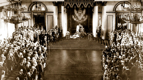 Выступление Николая II на торжественном открытии I Государственной думы и обновленного Государственного совета. Санкт-Петербург, Зимний дворец, Георгиевский зал, 27 апреля 1906 г.166