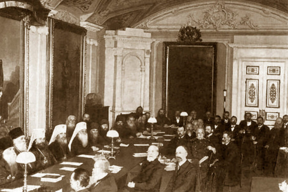 Рассмотрение вопроса о церковной реформе началось в конце 1905 года, когда в стране еще продолжалась революция. Началось с того, что 17 декабря 1905 года Николай II встретился с митрополитами С.-Петербургским Антонием (Вадковским), Московским Владимиром (Богоявленским) и Киевским Флавианом (Городецким). Царь «соизволил высказать, что в настоящее время, при обнаружившейся расшатанности в области религиозных верований и нравственных начал, благо-устроение Православной российской церкви – хранительницы вечной христианской истины и благочестия – представляется делом неотложной необходимости». 27 декабря он обратился к председателю Синода митрополиту Антонию с письмом о необходимости проведения преобразований в РПЦ. Антонию вместе с митрополитами Московским и Киевским предлагалось назначить сроки созыва Собора170.