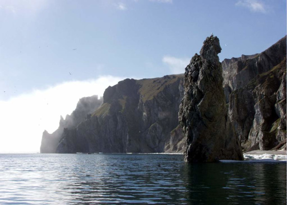 В последние годы НЭС «Михаил Сомов» регулярно совершает рейсы к самым восточным рубежам нашей Родины – к берегам Чукотки, в частности на остров Врангеля. Другого такого острова в Арктике нет. Недаром его называют осколком древней Берингии и оазисом жизни: здесь, далеко за Полярным кругом, сохранились до наших дней редчайшие виды растений и животных. Этот остров – крупнейший в мире «родильный дом» белых медведей и единственное в стране гнездовье белых гусей. Именно здесь находятся лежбища моржей и птичьи базары, именно здесь обитают стадо акклиматизированных недавно овцебыков и легендарные розовые чайки.
