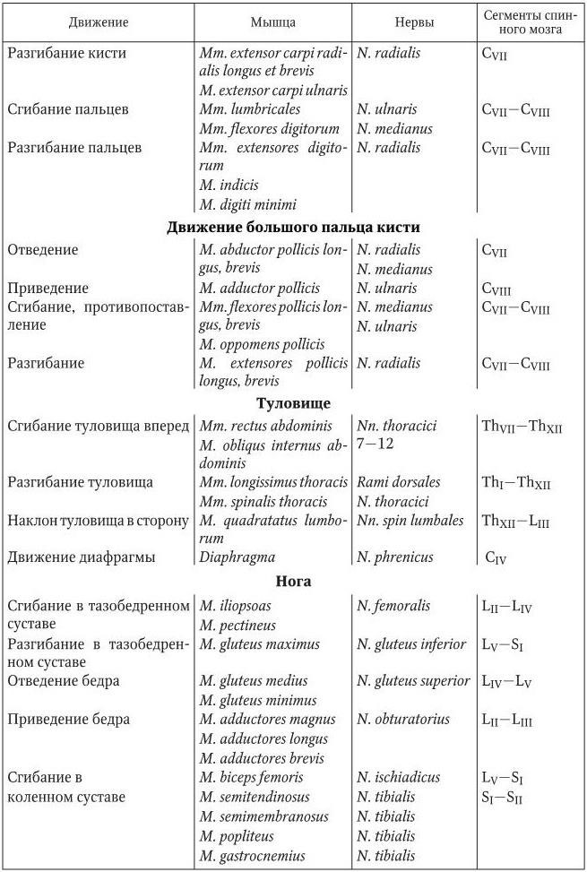 Функции мышц и их иннервация представлены ниже (табл. 2.1).