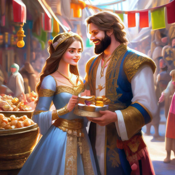 Задумалась княжна и молвит «Князь, мое удовольствие людей преображать красивыми нарядами, мир краше делать… В любом изюминку найти могу… Вот ты, князь, почему ещё не женился? Отчего невеста твоя не нашлась? Посмотри на себя, весь такой напыщенный, ткани да камни у тебя на кафтане и правда заморские, да вот сидит на тебе как на ежике ремень!» Прыснула княжна, смехом залилась… Князь зарумянился, и молвит: «Есть у меня к тебе предложеньице дельное! Я тебе ткани заморской кусок, а ты мне кафтан чтоб по мне сидел? По рукам?»