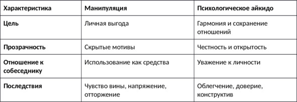 Принцип ненасилия – это основа психологического айкидо. Он превращает общение из поля битвы в пространство диалога. Когда мы не отвечаем агрессией на агрессию, мы не теряем силы – мы сохраняем контроль над собой и создаём условия для настоящего понимания.