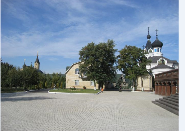Свято-Успенский-Николо-Васильевский-монастырь. На переднем плане храм святителя Василия и первый по времени служебный корпус, где и принимал в девяностых схимник. Attribution-ShareAlike 3.0. Автор: rsvisual.
