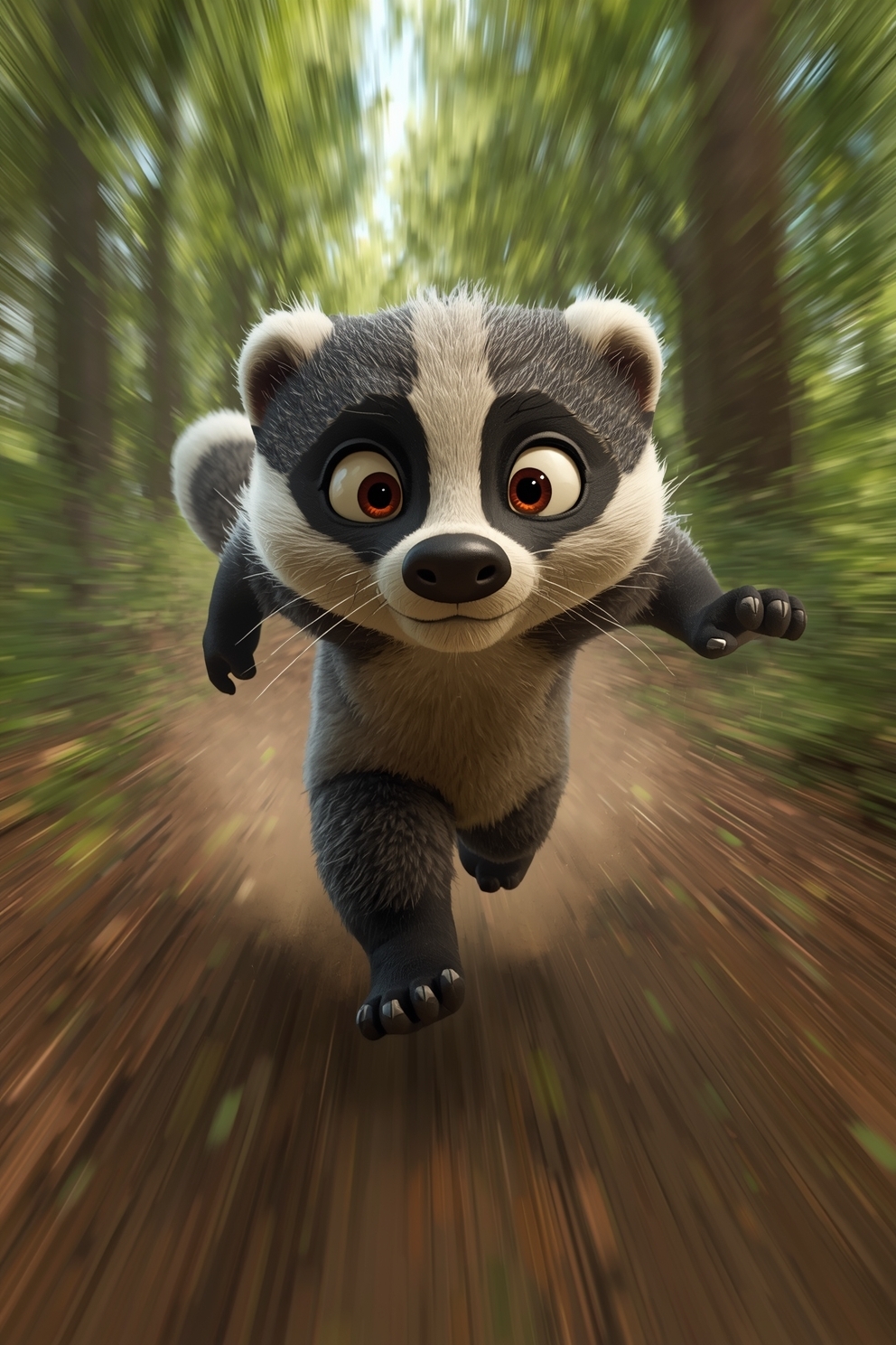 Лес превратился в размазанные мазки. Воздух звенел в ушах. Барсук не бежал – он летел над землёй, едва касаясь лапами земли, как стрекоза над водой. Деревья свистели мимо. Цветы едва успевали качнуться. Один миг – и он уже на другой стороне поляны.