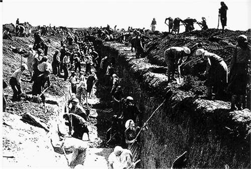 В то время как в районе станиц Канеловской, Шкуринской и Кущевской на берегах Еи и КугоЕи шли кровопролитные бои, 1 августа 1942 года Военный совет СевероКавказского фронта направил Краснодарскому крайисполкому партии и крайисполкому директивное письмо о том, что «в соответствии с указанием Ставки Главного командования Красной армии на территории Краснодарского края будет производиться строительство оборонительного укрепленного рубежа силами 28го Управления оборонительного строительства НКО СССР». От края требовалось оказать всемерную помощь, а именно: мобилизовать 75 тысяч человек местного населения, автомашины и конные подводы и предоставить лес, цемент, металл – все необходимое «к немедленному развороту строительства»143.