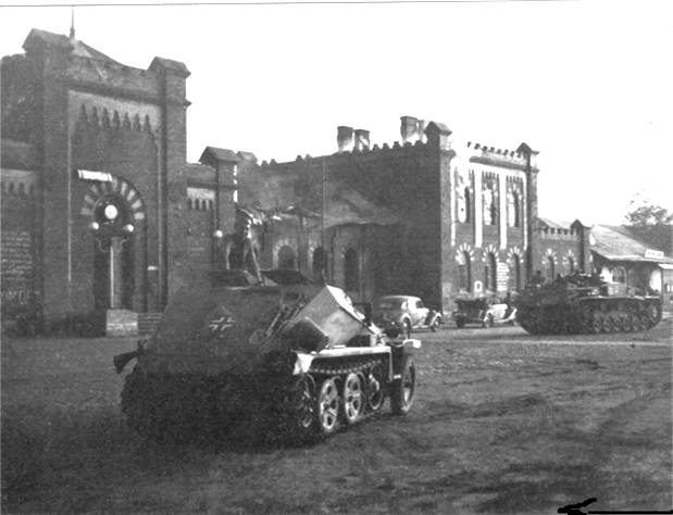 Боковыми улицами немецкая бронетехника прорвалась к железнодорожному вокзалу (кадры немецкой кинохроники)