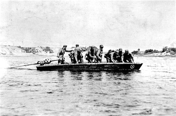 Немецкий офицер 9й пехотной дивизии оберлейтенант Флориан Тольк в своем фронтовом дневнике записал: «14.08.42… По моей команде инженеры молча несут надувные лодки к берегу реки… Точно в указанное время с северной стороны города раздались первые залпы нашей артиллерии, и вскоре на левый берег обрушился целый шквал огня. Пехота бросилась к лодкам и организованно стала занимать свои места.