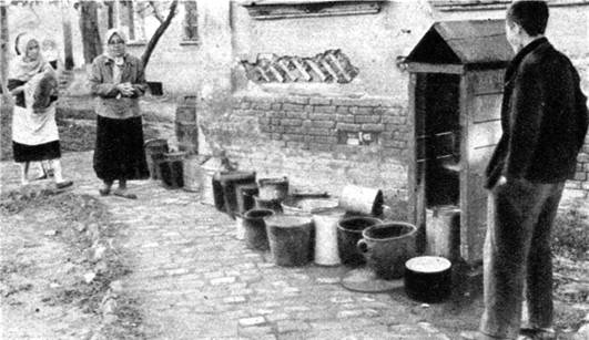 Итальянские журналисты за короткое времяпребывание в нашем городе смогли увидеть в основном только «парадную сторону» общественной жизни, которая, впрочем, и им показалась омерзительной. На самом же деле глубинная жизнь отдаленных от зачищенного от «неблагонадежных» жителей центра города была гораздо ужаснее и безнадежнее. Но и они сквозь внешнюю «мишуру», создаваемую оккупационным режимом, «очеловеченного облика» города смогли различить и другую сторону жизни краснодарцев. Это обнищавший облик жителей окраин и длинные очереди за водой. Дело в том, что городской водопровод перед уходом наших войск был выведен из строя, и краснодарцам приходилось пользоваться привозной водой, которая, впрочем, не всем доставалась. Поэтому очередь занимали сразу же после окончания комендантского часа.