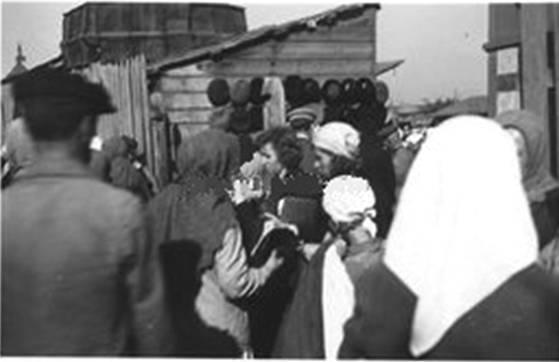 Так голодающие советские военнопленные пытались менять свои личные вещи на продукты питания. Голодом фашисты и их приспешники пытались сломить дух узников и заставить их перейти на сторону врага (не позиционированный снимок)