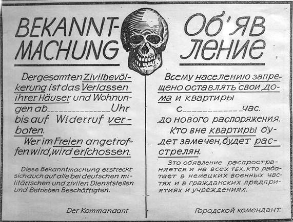Одно из обычных объявлений немецкого командования