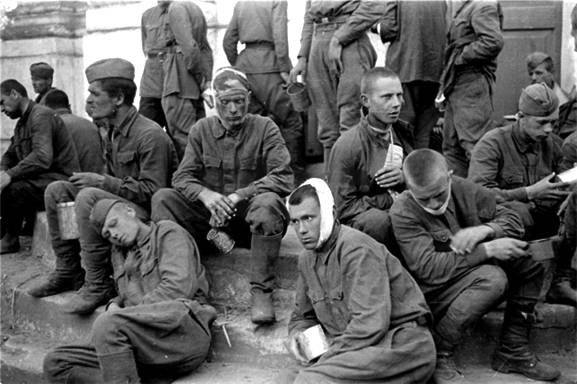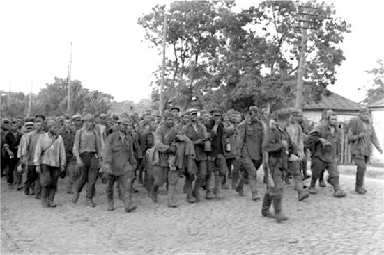 Сами немецкие конвоиры не могли бы уследить за поведением пленных в длинной колонне, но им усердно помогали холуи из бывших красноармейцев. Они выделялись белыми нарукавными повязками. Выслуживаясь перед своими новыми хозяевами, за лишнюю пайку они готовы были убивать даже своих недавних товарищей. Длинными толстыми палками били своих бывших товарищей по оружию и женщин, пытавшихся передать пленным чтолибо из еды.